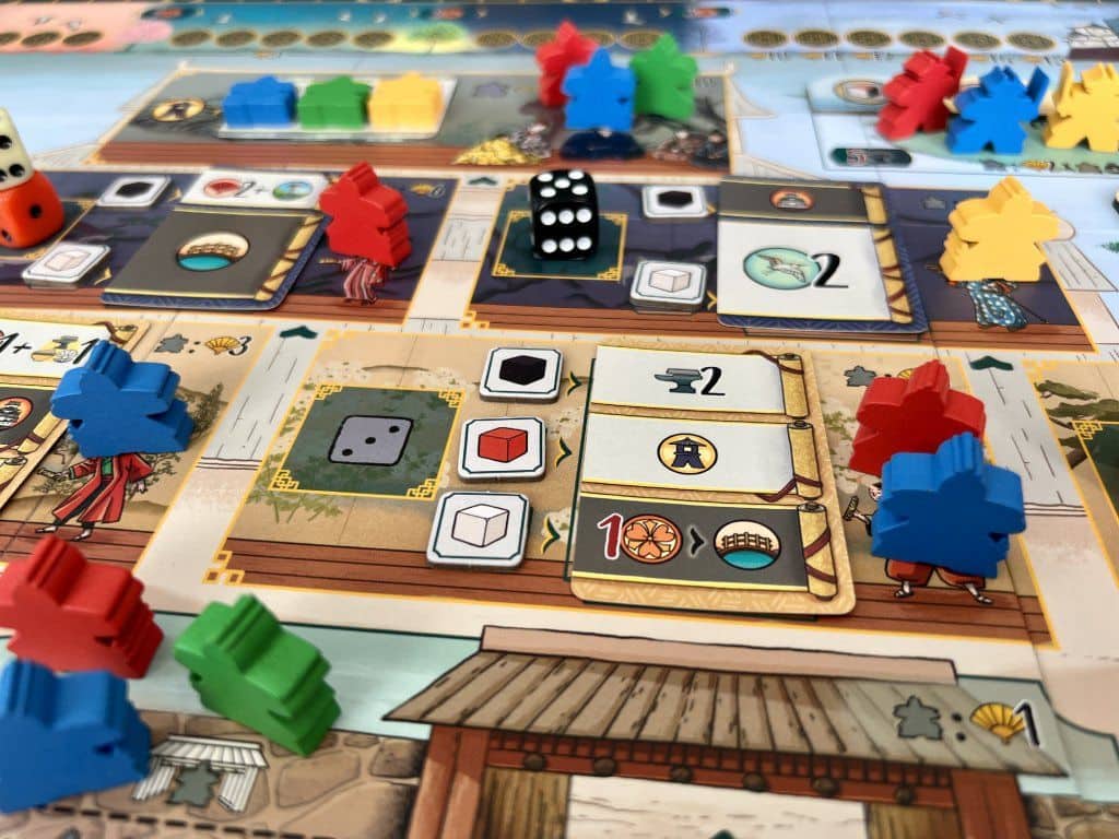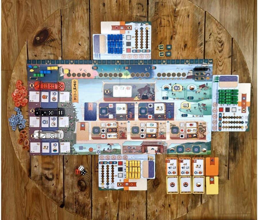 Na herním plánu najdete hrad Himedži vé své velkoleposti, rozdělený do několika oblastí. Největší část zaujímá vnitřek hradu s Místností tisíce koberců, kam se dvořané snaží vystoupat po pomyslném společenském žebříčku. Dostanou se tak přímo do blízkosti daimjóa a jeho přízně. Najdete zde také jezírka a zahrady, pečlivě udržované zahradníky, kde může každý spočinout. Nedílnou součastí komplexu jsou také hradby a blízké okolí, které střeží hlídkující válečníci. Nakonec je zde oblast tří mostů, kde se shromaždůjí kostky tří barev, které lze použít k provádění akcí. Každý hráč má také panství svého klanu, kde shromažďuje své zdroje a drží rezervy svých služebníků.