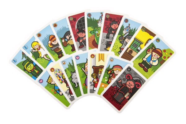 Černý petr s obrázky malovaných postaviček z pohádek.
