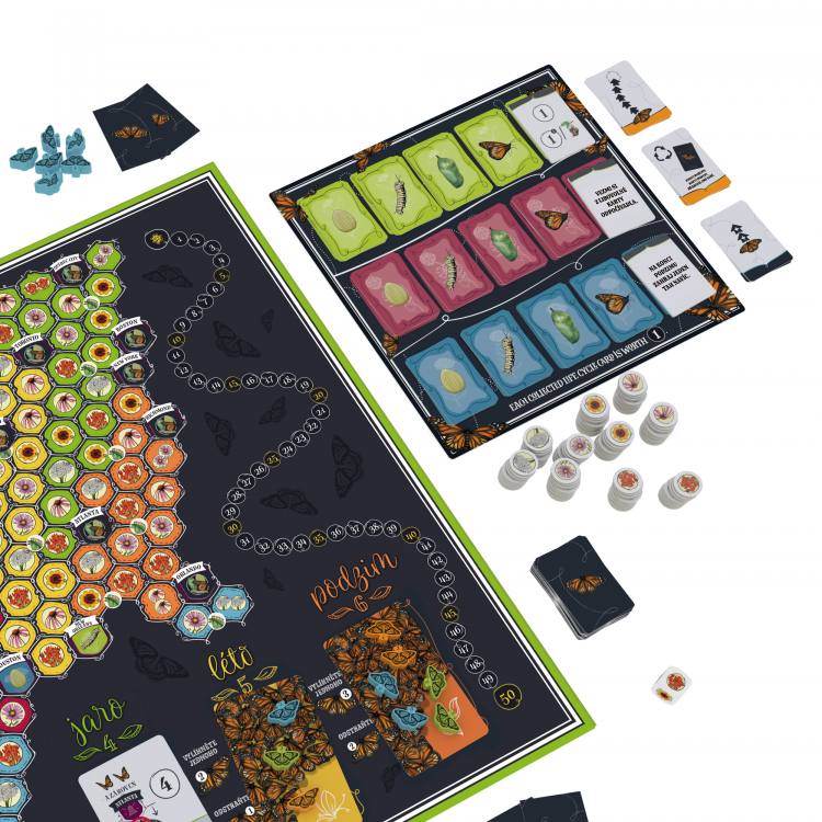Přístupná rodinná hra o fascinujícím putování Monarchů stěhovavých napříč americkým kontinentem od autorky hry Na křídlech, Elizabeth Hargrave.
