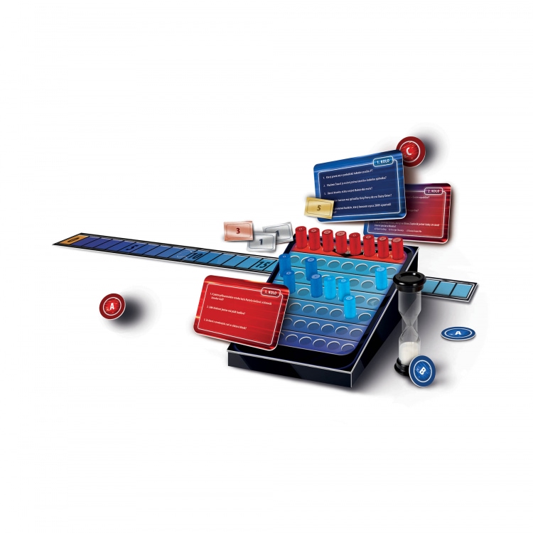 300 karet s otázkami ve 4 kategoriích, kartonový stojánek, kartonové počítadlo finálové štvanice, 16 dřevěných žetonů lovců a soutežících spolu s archem samolepek, 60 žetonů výhry, 6 žetonů odpovědí, přesýpací hodiny a pravidla.