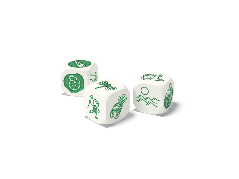 Hoďte třemi kostkami a vytvořte dramatické příběhy plné pravěkých predátorů. Hra, ve které nejde o vítězství, pro jednoho a vice hráčů od šesti let. Nejlépe funguje v kombinaci s dalšími sadami Příběhů z kostek.