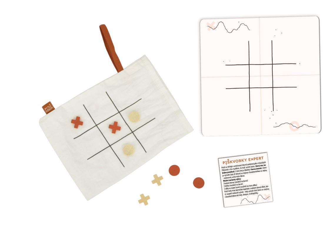 Dřevěné komponenty v praktickém pytlíku na cesty.