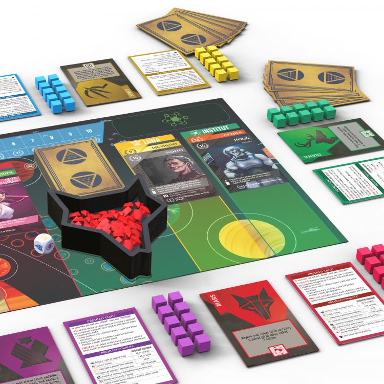 6 žetonů flotily (po 1 v 6 barvách), žeton prvního hráče (srpek měsíce)
