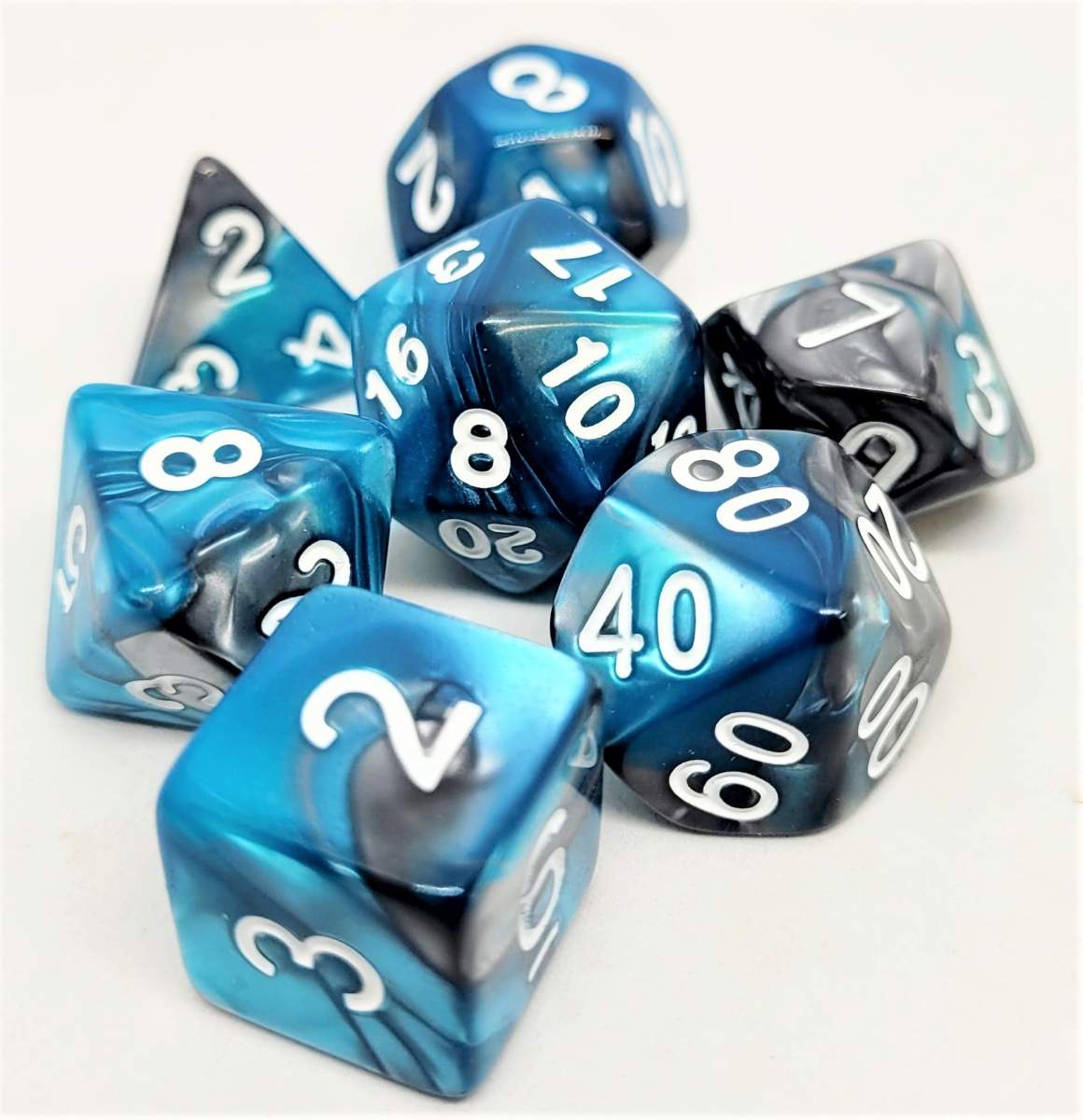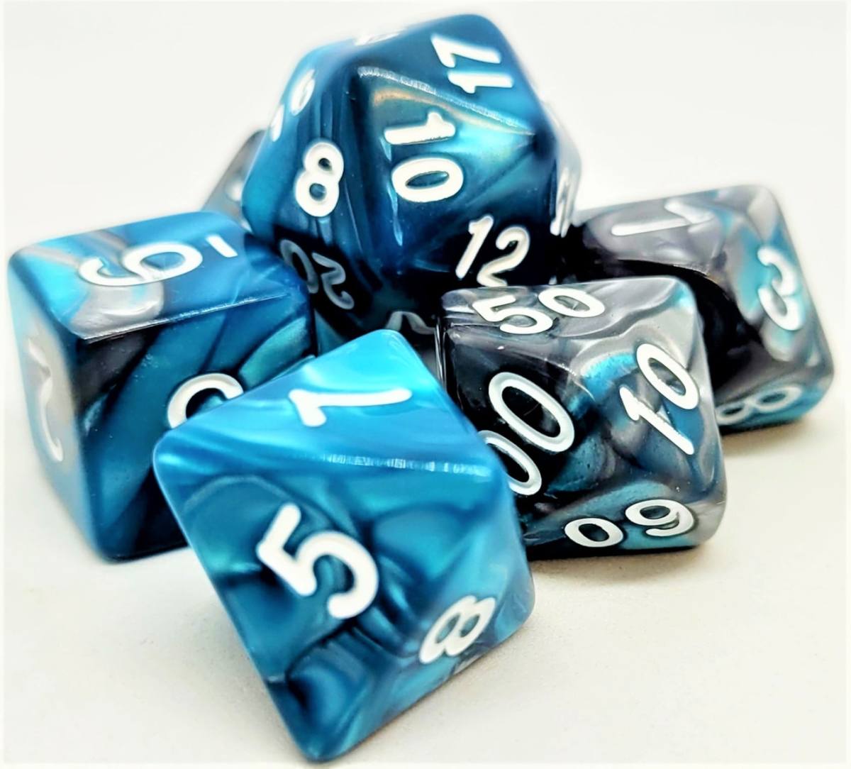 Sada 7 plastových kostek s čísly v barevném provedení Racing Petrol.