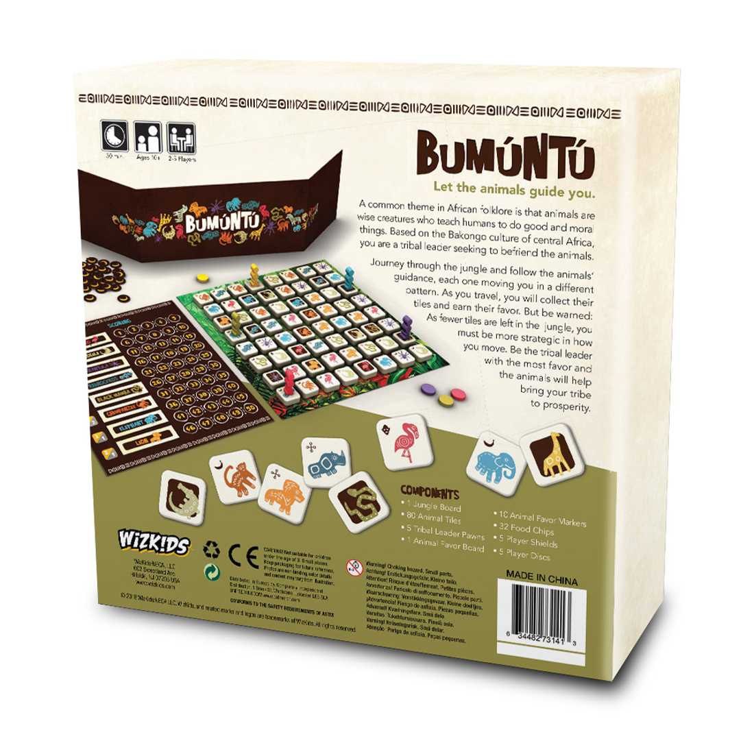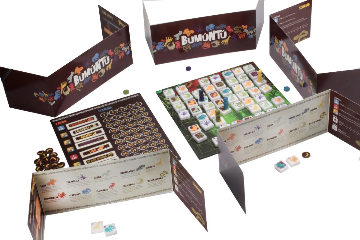 Once all the Advancement chips have been collected, each animal will offer a different amount of favor based on how far up they are on the Favor Leaderboard, something that players can affect throughout the game. Bonus points will be given for collecting Nkisi (small statues) and Yowa (spiritual symbols). At the end of the game, the leader who has accumulated the most favor wins!