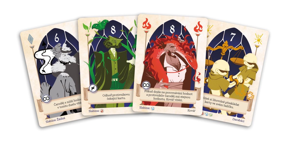 Na začátku hry si každý hráč sestaví balíček 6 karet, které bude v průběhu hry používat. Každé kolo odehrajete pomocí svých 6 karet čarodějů, kteří se vzájemně utkají jeden po druhém a poměří své magické schopnosti a hodnoty.