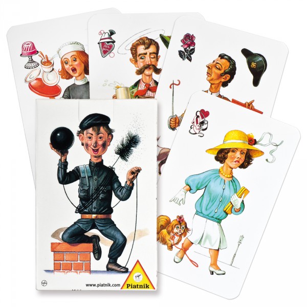 Karetní hra Černý Petr s motivem Veselé obrázky v papírové krabičce.