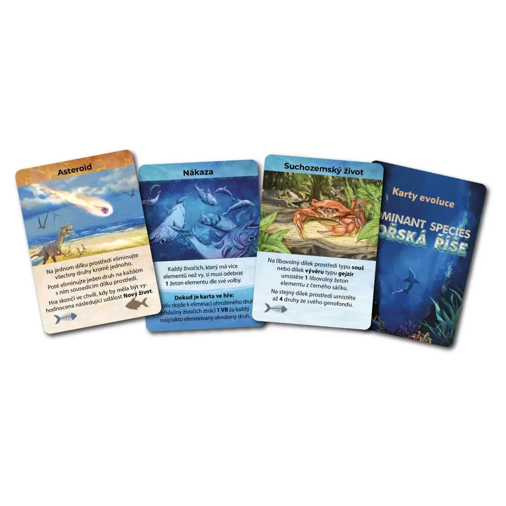Chytrým umisťováním akčních figurek se budete pokoušet pro své druhy vytvářet takové podmínky, aby prosperovaly v co největším počtu různorodých biotopů. Díky tomu budete moci vyhodnocovat silné účinky uvedené na kartách evoluce. Své druhy budete také dále množit za účelem zisku vítězných bodů pro svého živočicha. V tomto úsilí vám pomohou např. akce speciace, migrace, adaptace a jiné.