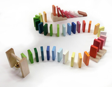 Sada obsahuje 95 pestrobarevných kamenů o rozměru 40x20x7mm. Přidána také "branka" se zvonečkem, kterou můžete zakombinovat při stavění dráhy.
