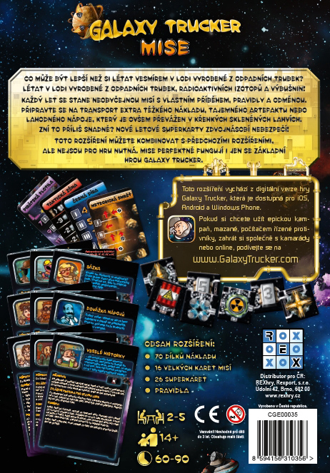 Nelze hrát samostatně, nutné vlastnit základní hru Galaxy trucker!