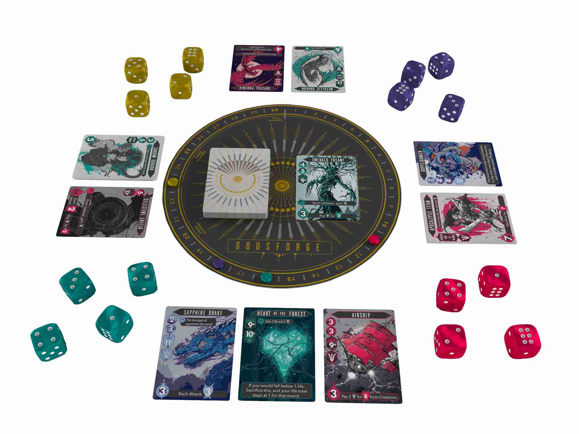 Casting spells is fast and fun. Roll your dice then combine, re-roll, and re-combine the results to forge the elements you need to play the best card, right now.