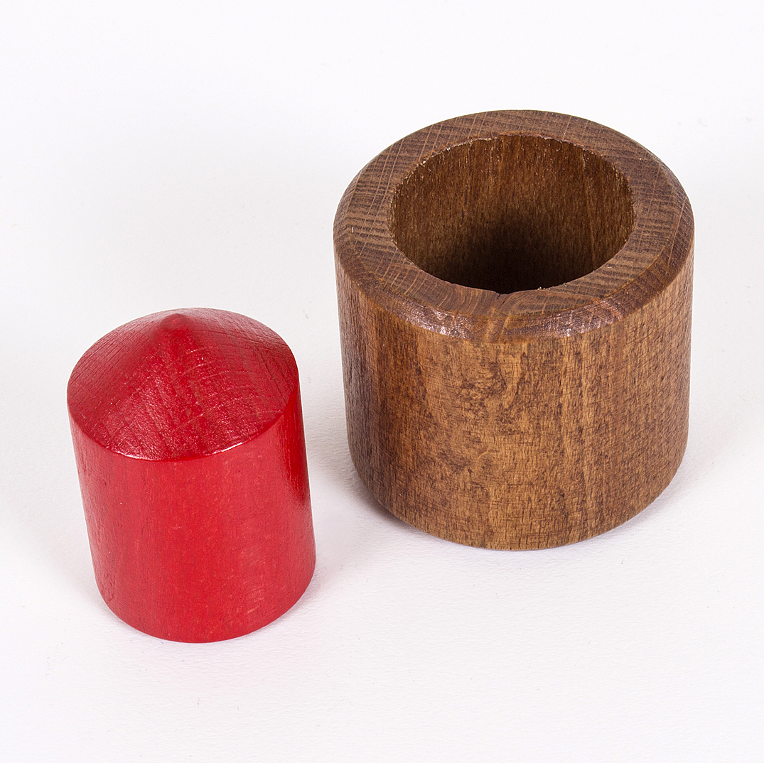 Vložte „váleček“ do „kelímku“. Poté umístěte kelímek na rovnou plochu (špička válečku musí směřovat nahoru). Úkolem je vyndat váleček, aniž by bylo pohnuto s kelímkem. Samozřejmě je možné jej přidržet rukou. Dřevěný hlavolam inspirovaný teorií zemské přitažlivosti, kterou formulovatl sir Isaac Newton.