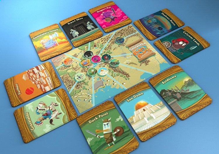 10 balíčků karet s prostředím po 8 kartách (identifikované podle zadní strany karet),