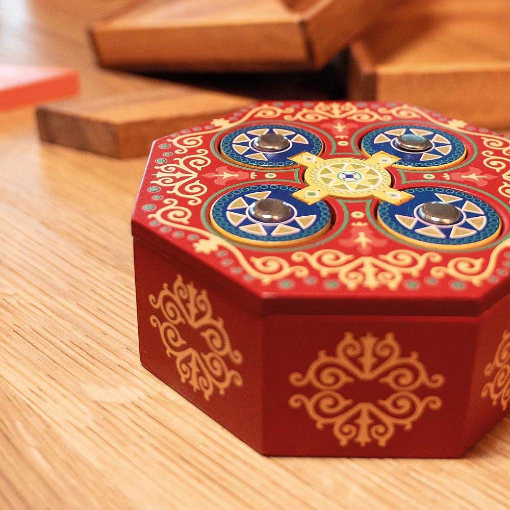 Dřevěný hlavolam. Otevřete tajemnou krabičku.