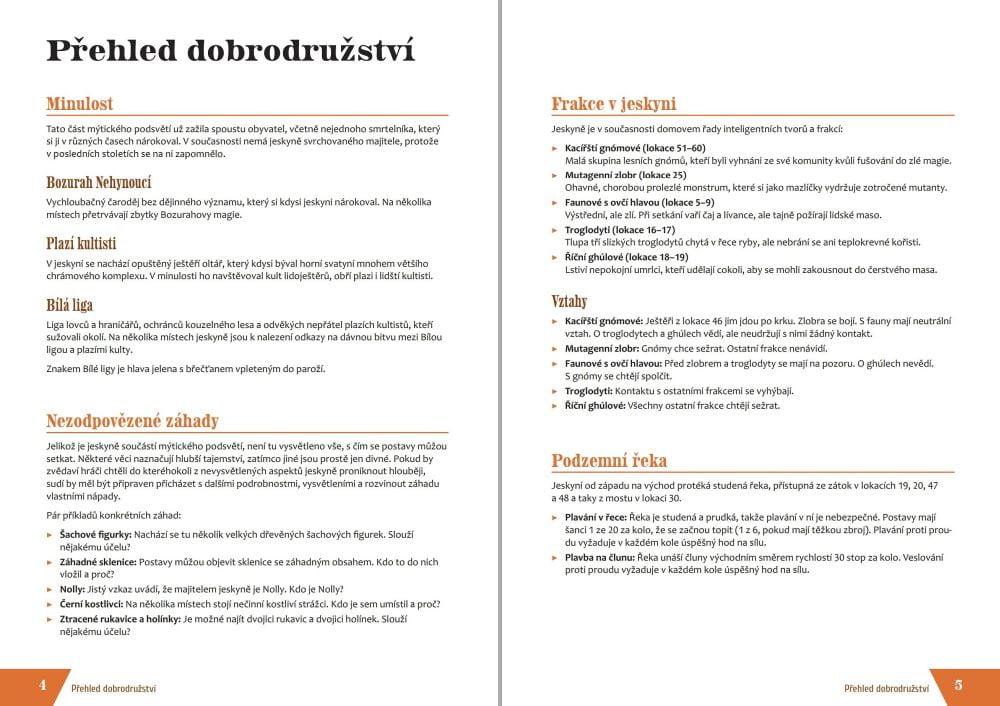 Tabulka zvěstí, přehled pokladů, návrhy na rozšíření jeskyně a další praktické informace