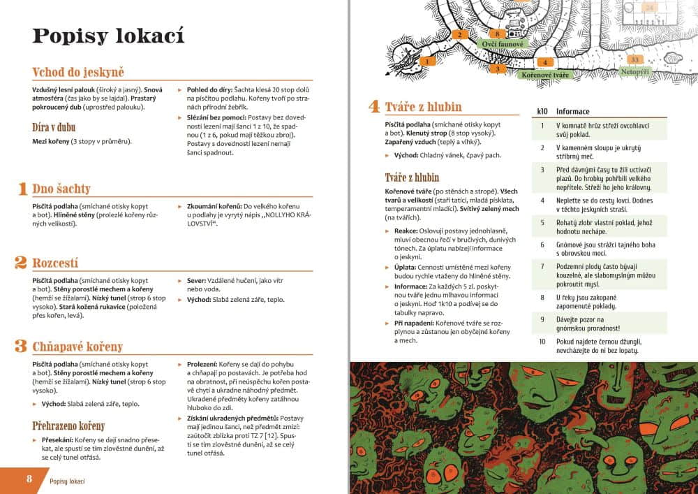 Díra ve starém dubu zavede postavy do změti kroutících se, kořeny prorostlých chodeb, do zapomenutých komnat pradávného čaroděje a k břehům podzemní řeky, u které si kdysi dávno vybudoval chrámy plazí kult.