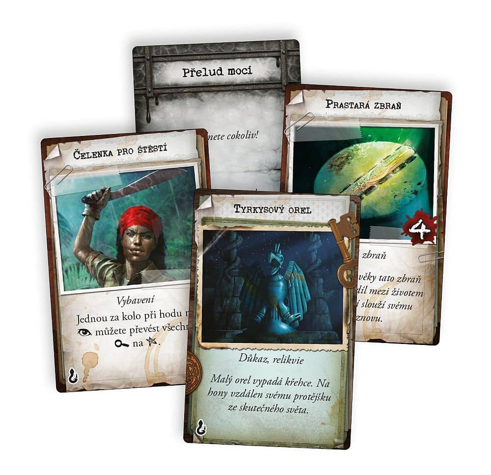 4 karty vyšetřovatelů a příslušné figurky