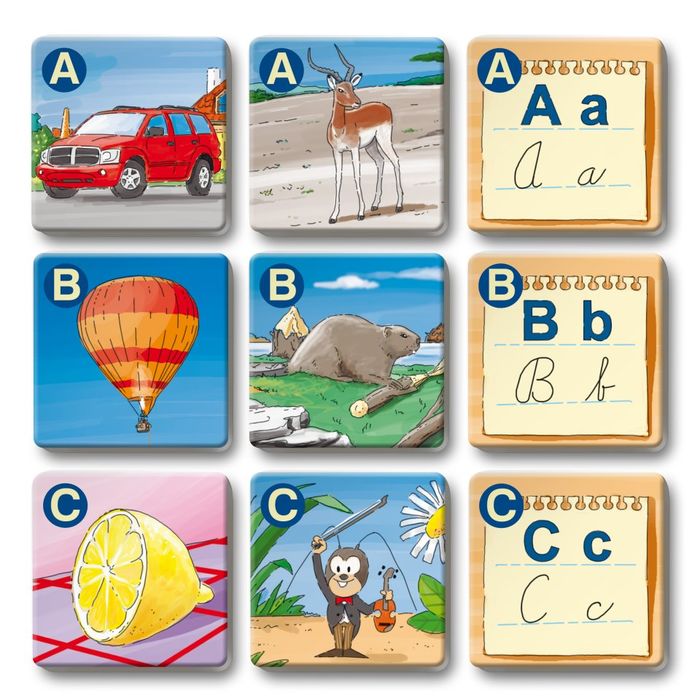 Pexetrio ABECEDA 1 je didaktická a zábavná hra, ve které se naučíte poznávat první písmenka psané i tiskací, předměty a zvířátka, jejichž pojmenování na daná písmenka začíná.