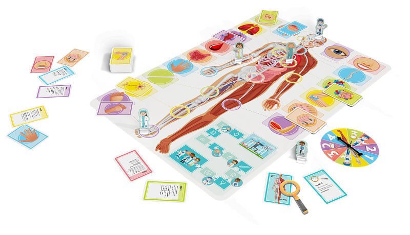 První hráč, který dorazí do cíle, se stane doktorem! Pohybujte svou figurkou po herním plánu, odpovídejte na zábavné otázky o lidském těle a o tom, jak funguje, a sami si vyzkoušejte různé pohyby. Úspěšné zvládnutí úkolů vás posune vpřed na cestě k tomu, abyste se stali doktorem, ale ostatní hráči se budou snažit být ještě rychlejší než vy!