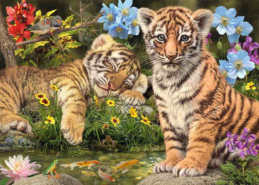 Malí tygříci vynikají maskováním. Dokážete spočítat, kolik se jich na 1000 dílném puzzle skutečně skrývá?