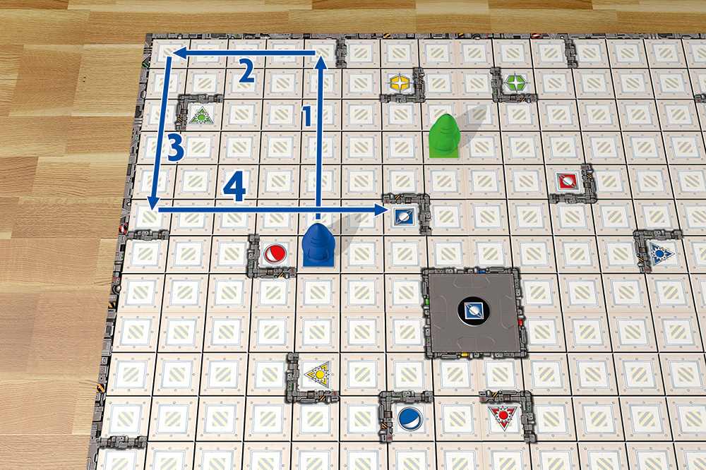 Na sestavený čtvercový hrací plán (složený ze 4 oboustranných dílů pro větší variabilitu) se umístí 4 barevní roboti. Dopravte vybraného robota na cílové pole určené žetonem vylosovaným na začátku každého kola za pomocí co nejmenšího počtu tahů. Všichni hráči hrají současně a žeton získá hráč, kterému se podaří nalézt nejkratší cestu.