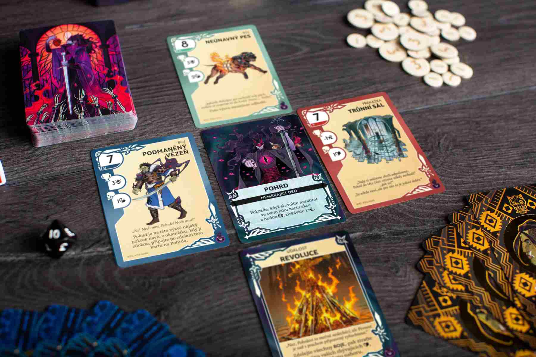 Pohrdova studna se skládá ze čtyř výzev, přičemž samotný Pohrd je umístěn uprostřed. Jakmile je jedna výzva poražena, nahradí ji jiná, přičemž celkový počet výzev ve hře je 57. Když čelíte výzvám studny, můžete zahrát kartu dovednosti z vaší ruky pouze tehdy, když odpovídá barvě výzvy, například pokud čelíte červené výzvě, můžete zahrát pouze červenou kartu dovednosti. Některé karty mají dvě barvy, a některé jsou bílé, tedy wild (univerzální). Pokud karta, kterou zahrajete, neporazí výzvu, budete moci přidat nějaký pokrok a pokusit se o ni znovu, přičemž se vystavíte trestu za tento pokus.