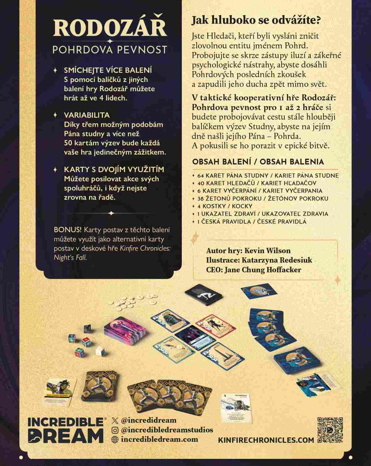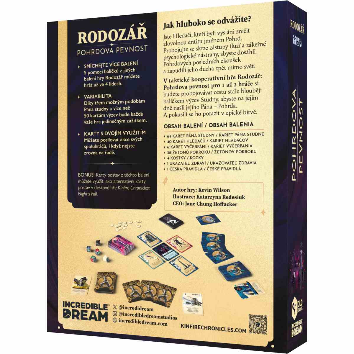Rodozář: Pohrdova pevnost je taktická a kooperativní karetní hra pro 1–2 hráče. Jako Hledači se budete probojovávat skrze dobře zamíchaný balíček výzev, abyste dosáhli Pohrda, pána studny, a postavili se mu v epické závěrečné bitvě.