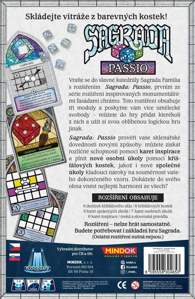 Sagrada: Passio prověří vaše sklenářské dovednosti novými způsoby: můžete získat rozličné schopnosti pomocí karet inspirace a plnit nové osobní úkoly pomocí křišťálových kostek, jakož i nové společné úkoly kladoucí nároky na souměrnost vašeho dokončeného vzoru.