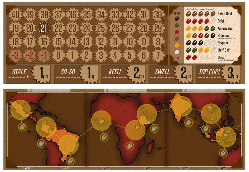 In the game, players send their researchers to hot spots around the globe to gather the perfect bean. This may bring them into contact with other players who are also on the hunt, creating a crucial choice: Go it alone and continue to research, or join forces with that opponent, hoping to combine beans from both player’s bags and share the score with a superblend. Going it alone with research can often prove useful as players spend time in the lab developing abilities that grant them an advantage. However, in VivaJava the bold taste of victory will go only to those players who are able to balance solitary research with cooperation amongst their fellow gamers.