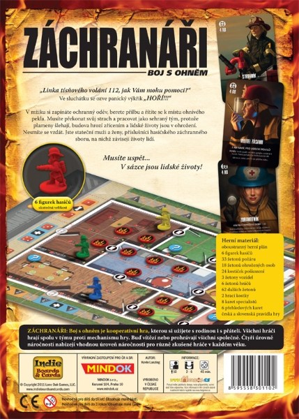 Kooperativní desková hra, kterou si užijete s rodinou i s přáteli. Všichni hráči hrají spolu v týmu proti mechanismu hry. Buď vítězí nebo prohrávají všichni společně. Čtyři úrovně náročnosti nabízejí vhodnou úroveň výzvy pro různě zkušené hráče v každém věku. Musíte překonat svůj strach a pracovat jako sehraný tým, protože plameny šlehají, budova hrozí zřícením a lidské životy jsou v ohrožení. Nesmíte se vzdát. Jste stateční muži a ženy, příslušníci hasičského záchranného sboru, na nichž závisejí životy lidí.