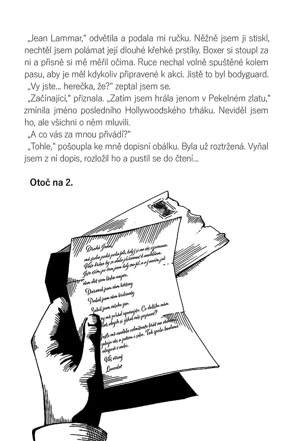 Dveře se doširoka otevřely a já si uznale pozdvihl krempu klobouku. V zárubni stála dívka, která by si v ničem nezadala s Ritou Hayworth. Dlouhé nohy objímala přiléhavá sukně, která dokonale zdůrazňovala neodolatelné křivky. Upnuté sáčko naznačovalo přísnost a dlouhé kadeřavé vlasy kryl fešný klobouk. Její oči prozrazovaly odhodlání a – strach.