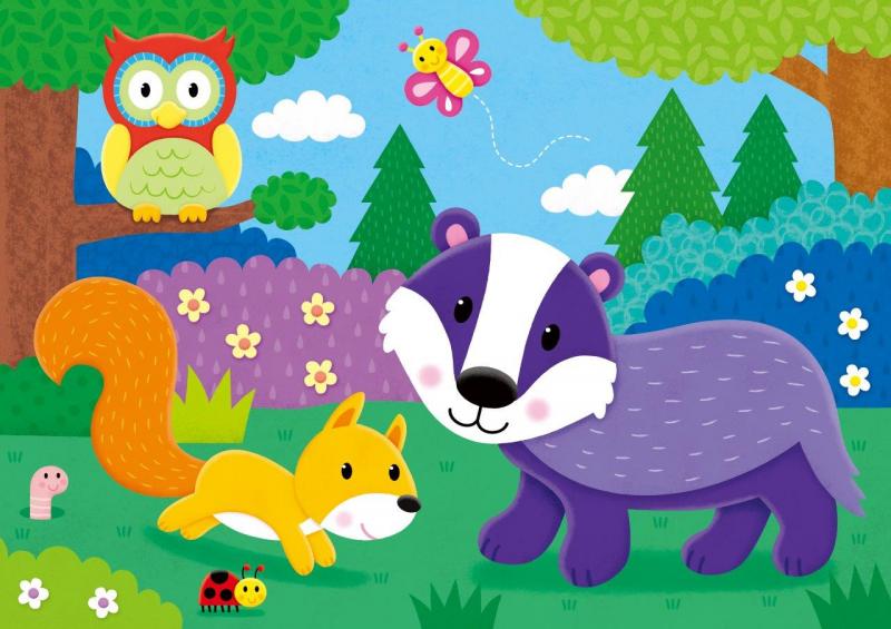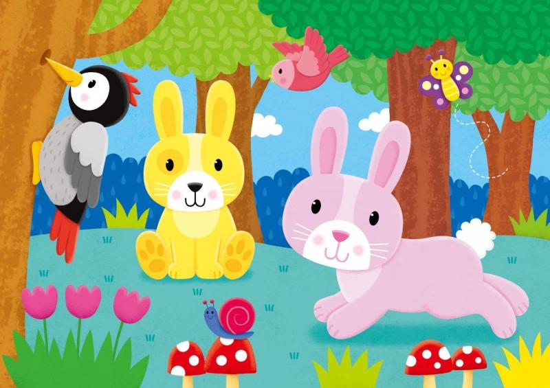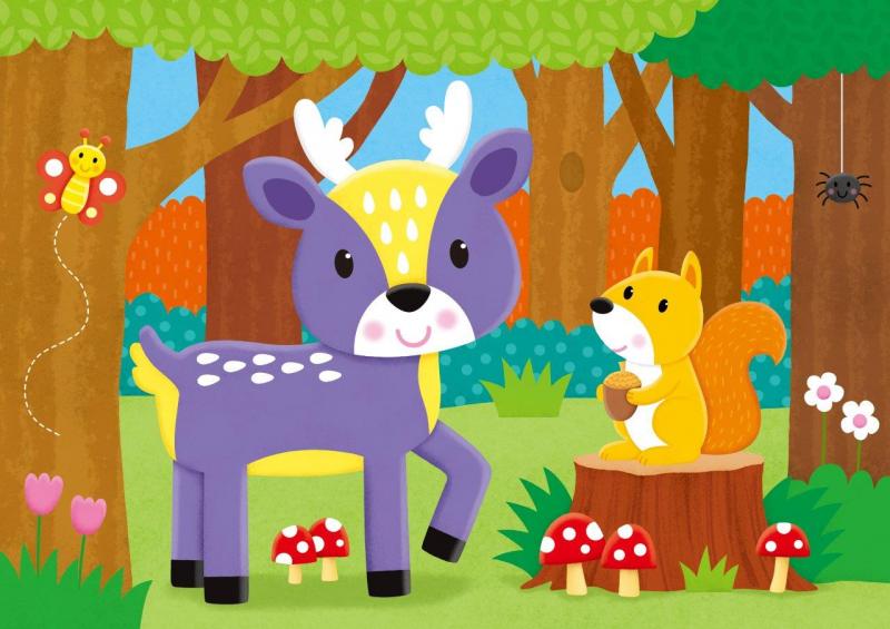Puzzle pro děti, které obsahuje set 4 skládaček s motivem zvířátek z lesa.