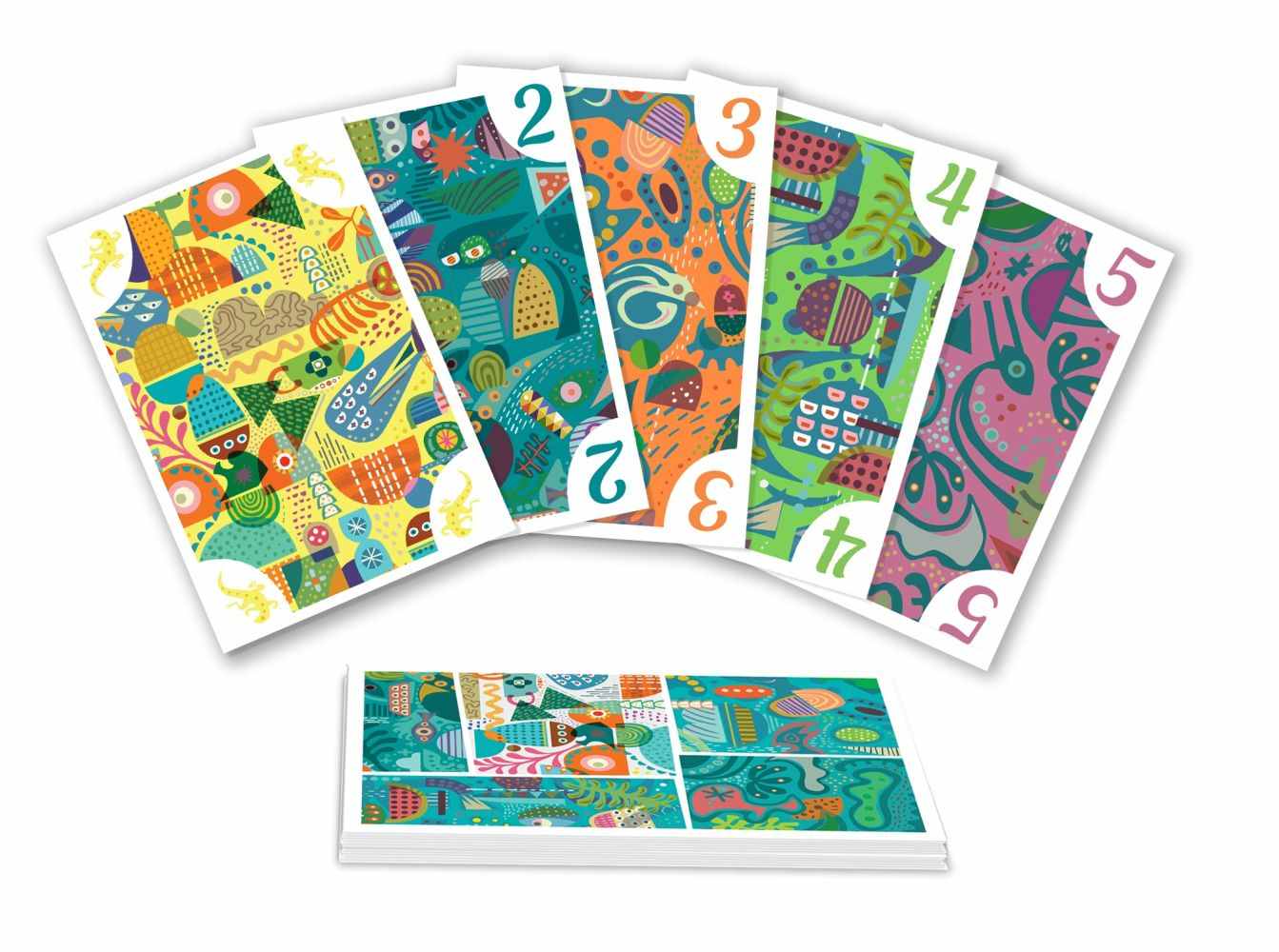 5211 is a fast-playing card game with a unique scoring method that rewards clever play!