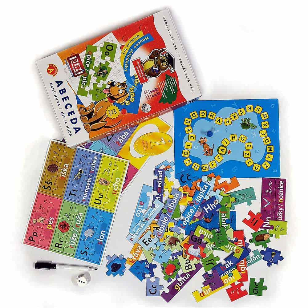 „Abeceda není nuda“ je skvělá zábava a zároveň učební pomůcka pro děti v předškolním věku a prvňáčky. Balení obsahuje 29 sad puzzlí, která znázorňují jednotlivá písmenka abecedy. Každé puzzle se skládá ze čtyř dílků – s obrázkem, s jeho názvem a s odpovídajícími tiskacími a psacími písmenky. Bohaté varianty hry, během nichž je třeba různě uspořádat či vyhledat jednotlivé dílky, pomáhají dětem naučit se abecedu, dále je učí rozpoznávat písmenka a jejich pořadí v abecedě či vyhledávat počáteční písmenka ve slovech a zároveň procvičují paměť a koncentraci.
