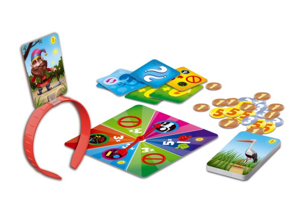 Hra obsahuje: 56 oboustranných karet s ilustrovanými slovy/větami k uhodnutí, 4 čelenky s držáky, šipka a otočný mechanismus pro losování nápověd, 24 žetonů s body, 6 speciálních karet, návod.