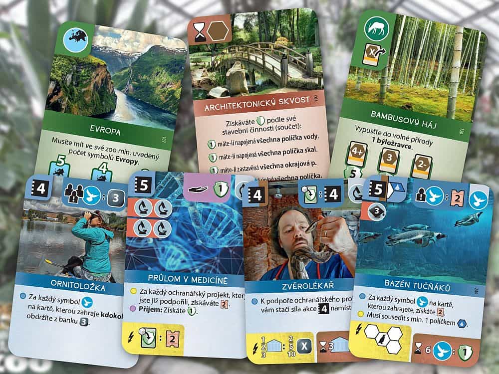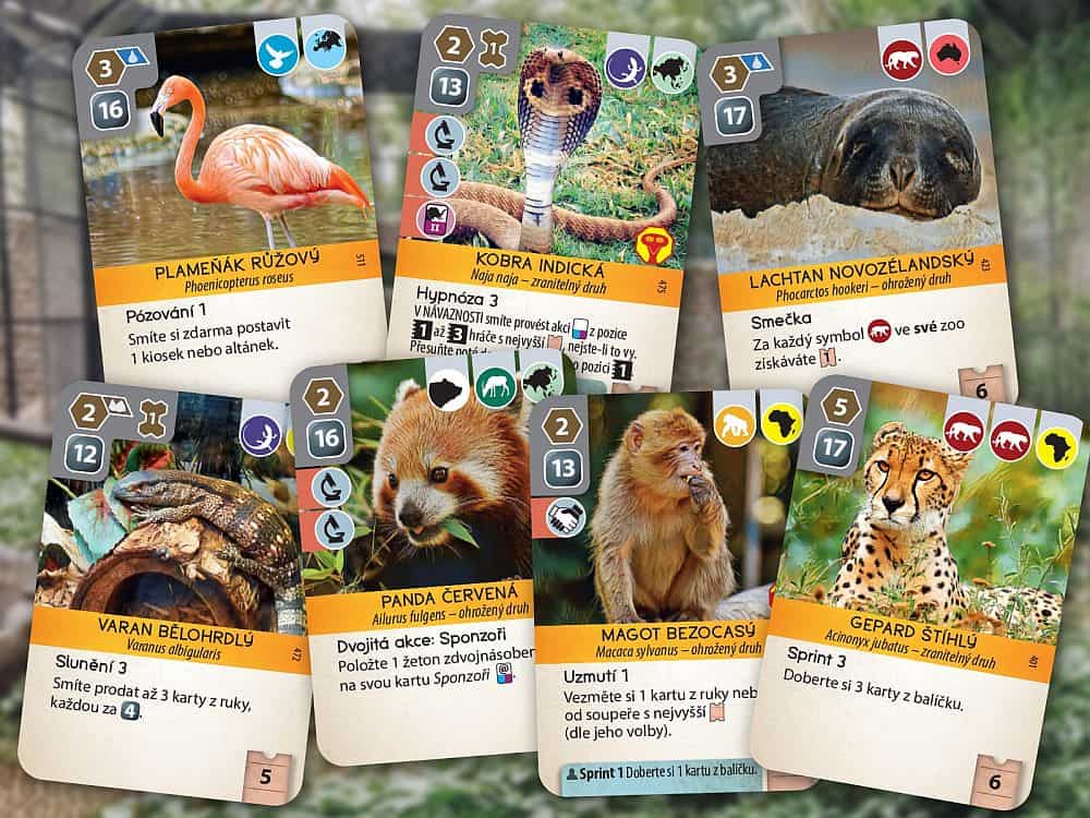Základem hry je více než 230 karet zvířat, sponzorů a projektů, každá s různým speciálním efektem. Jejich důmyslným využitím budete zvyšovat atraktivitu a vědecký věhlas svojí zoo i svůj status v oblasti ochrany zvířat. Svoje akce budete provádět pomocí sady 5 karet akcí, stejných pro každého hráče.
