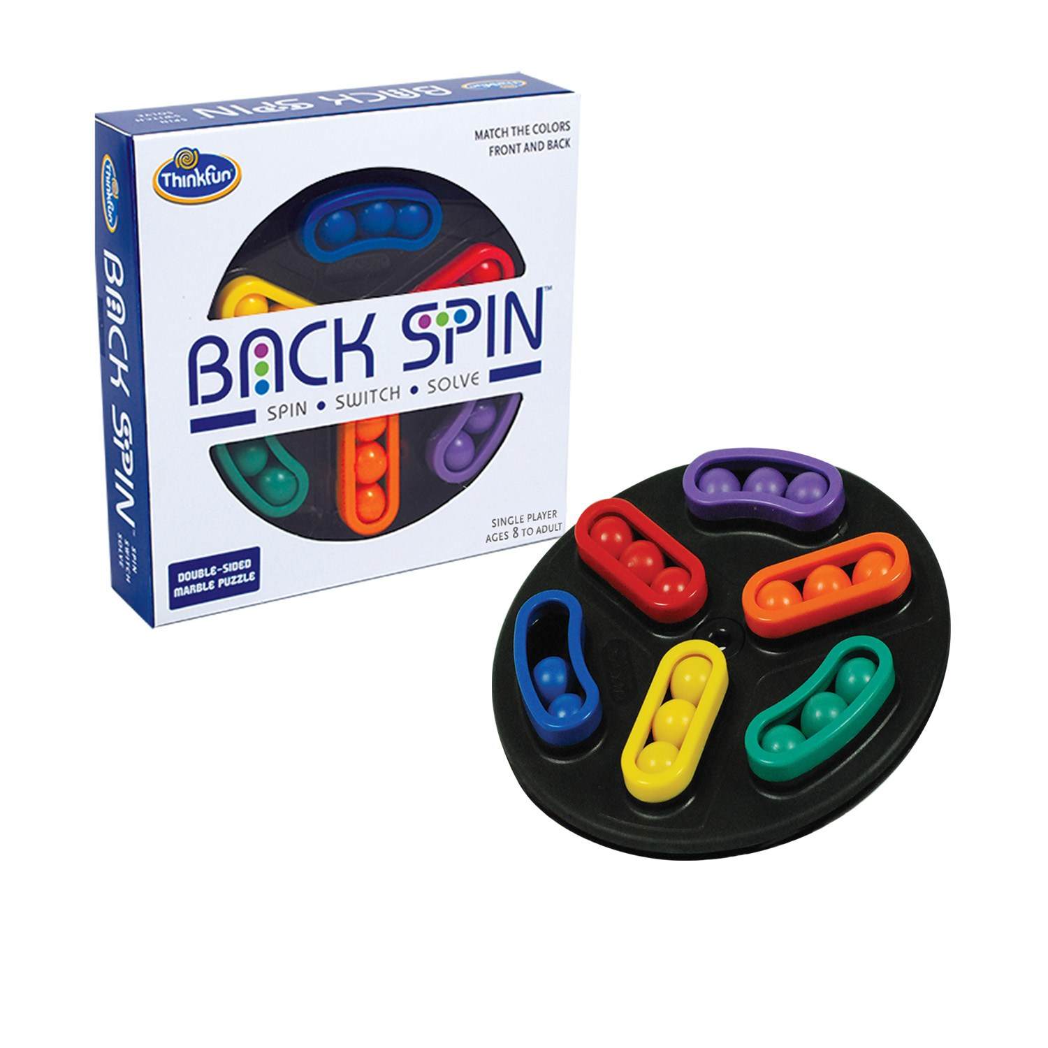 Back Spin is a double-sided brainteaser that is truly revolutionary. This Oppenheim Award winning puzzle is shaped like a flying saucer with two halves that you twist to pass balls from one side to the other. Your job is to scramble the colored balls, then figure out how to get them back into their matching slots — on both sides. Back Spin might look simple at first, but this cleverly addictive puzzle could leave your head spinning!