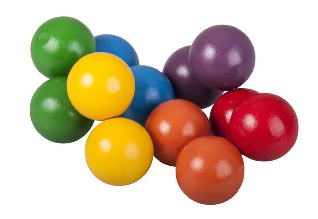 Hlavolam se skládá z 12ti barevných dřevěných kuliček na gumičce, ze kterých je možné sestavit různé tvary podle přiloženého návodu.