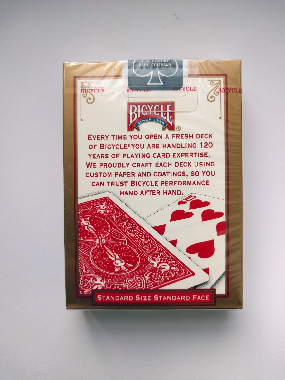 Kvalitní pokerové karty od firmy Bicycle s červeným motivem na rubové straně.