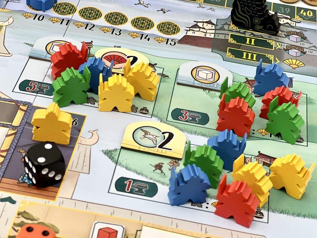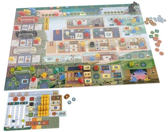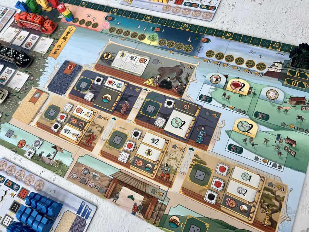 Na herním plánu najdete hrad Himedži vé své velkoleposti, rozdělený do několika oblastí. Největší část zaujímá vnitřek hradu s Místností tisíce koberců, kam se dvořané snaží vystoupat po pomyslném společenském žebříčku. Dostanou se tak přímo do blízkosti daimjóa a jeho přízně. Najdete zde také jezírka a zahrady, pečlivě udržované zahradníky, kde může každý spočinout. Nedílnou součastí komplexu jsou také hradby a blízké okolí, které střeží hlídkující válečníci. Nakonec je zde oblast tří mostů, kde se shromaždůjí kostky tří barev, které lze použít k provádění akcí. Každý hráč má také panství svého klanu, kde shromažďuje své zdroje a drží rezervy svých služebníků.