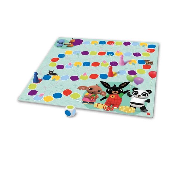 Nebo buďte první, kdo přijde na OSLAVU Bingových narozenin. Ale pozor na barevné Hoppity, tyrkysoví vám cestu zrychlí, ale růžoví vás pošlou zpět. Pohyb po cestě určuje barevná kostka.
