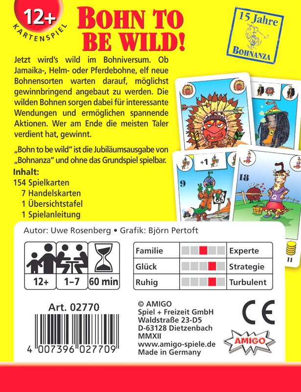 Bohn To Be Wild! přináší do klasiky nové prvky, a to 11 nových typů fazolí, pravidla k sólo hraní, zvláštní odrůdu divokých fazolí a v neposlední řadě umožňuje hrát až 7 hráčům najednou.