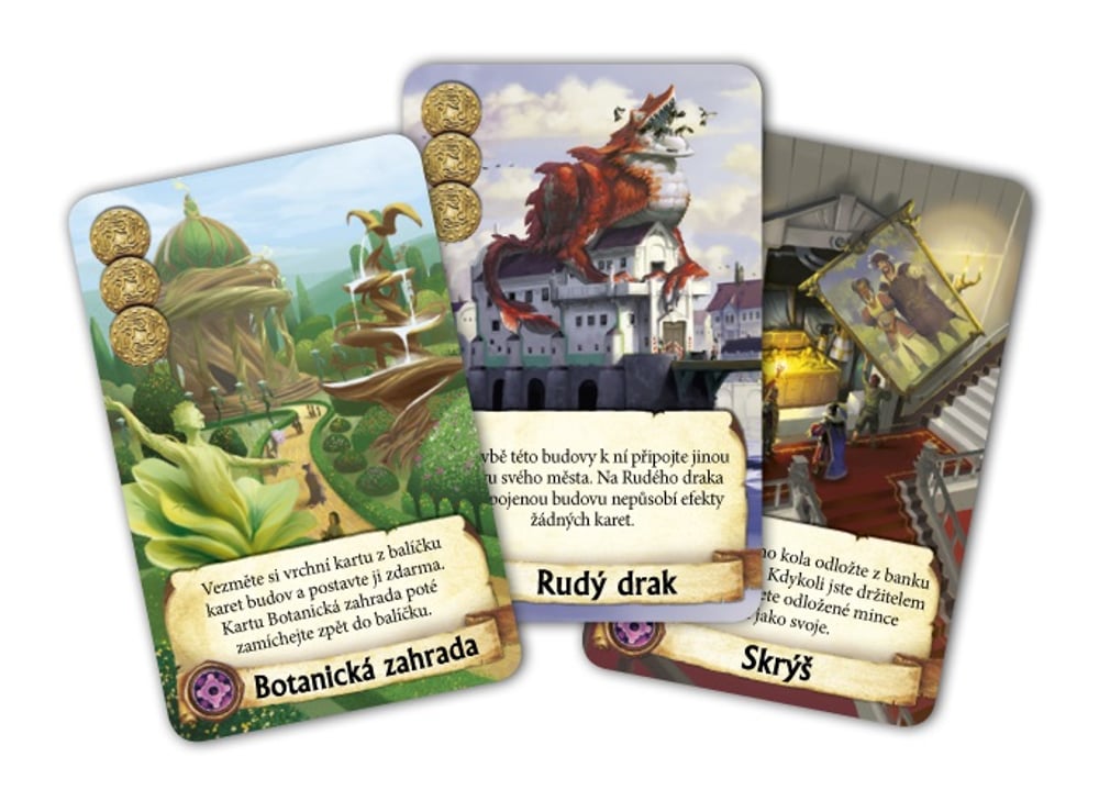 Karetní hra s překrásnou grafikou karet. Cílem hráčů je postavit své město z karet staveb. Za každou kartu musí ale zaplatit zlatem. K němu se mohou dostat pomocí dalších karet hrdinů. V každém kole hry si hráči volí různé role. Každá z těchto rolí má určité silné a slabé stránky, které hráč během tahu využívá. Je také důležité skrýt svoji totožnost před protihráči a odhadnout jejich strategii. Hráč který na konci hry vlastní nejvíce obodované město vyhrává.
