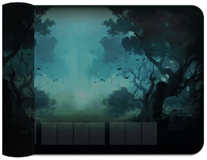 Oboustranná neoprenová herní podložka pro hru Dějiště: Divoký hvozd v rozměru cca 96 × 61 cm.