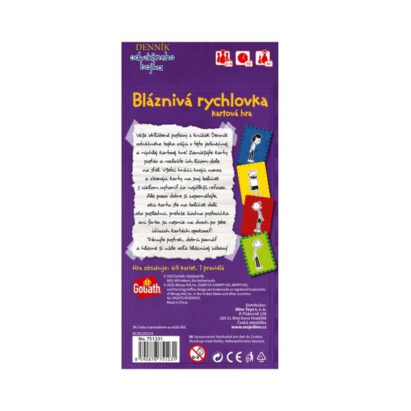 Oživte oblíbené postavy Grega, Rowliho, Mannyho a další z Deníku malého poseroutky od Jeffa Kinneyho v karetní hře! Soutěžte s přáteli o nejdelší řetězec těchto oblíbených postaviček s různými barevnými podklady a potrénujte postřeh a paměť.