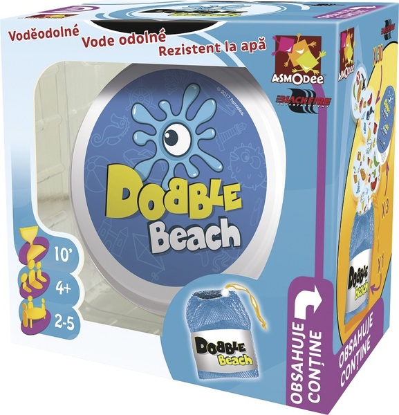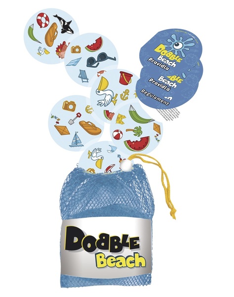 Postřehový bestseller se vrací s postavičkami a symboly, se kterými se můžete potkat na letní dovolené! Vezměte si tuto zábavnou hru na pláž ve stylovém sáčku! Karty jsou voděodolné, takže žádný strach! Najděte jeden jediný společný symbol nacházející se na libovolné dvojici karet! Abyste vyhráli, musíte jej najít dříve, než ostatní!