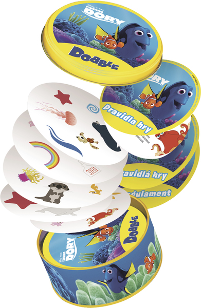 Postřehový bestseller se vrací s postavičkami a symboly z animovaného hitu Hledá se Dory od Pixaru! Najděte jeden jediný společný symbol nacházející se na libovolné dvojici karet! Abyste vyhráli, musíte jej najít dříve, než ostatní!
