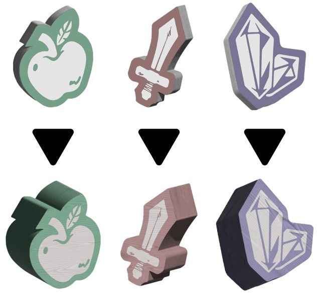 Dřevěné luxusní zboží pro hru Dobrodruzi Navorie (Explorers of Navoria), které nahrazuje kartonové komponenty základní hry. Tyto velké dřevěné dílky jsou potištěny sítotiskem a dodávají se v truhličce s pokladem.