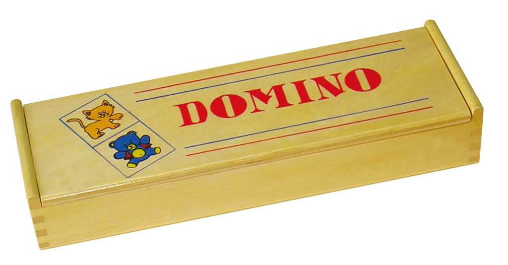 Klasická stolní hra domino se zvířátky. Je určena pro děti, kterým ještě nejde počítání teček na klasickém dominu. Obsahuje 28 dřevěných destiček domina.