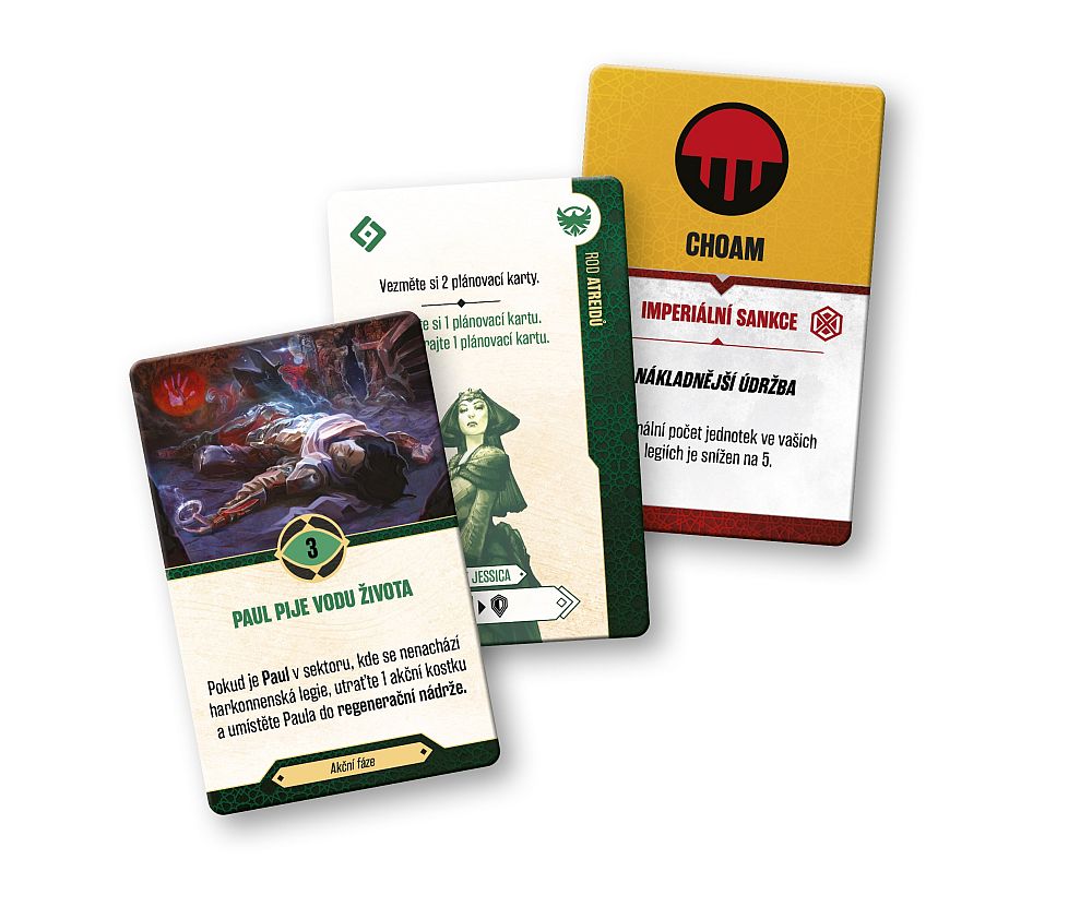 V této asymetrické hře musí rod Harkonnenů se svými vojáky ovládnout Arrakis, protože kdyby koření přestalo proudit, ztratili by podporu mocností uvnitř Impéria. Mezitím Paul Muad‘Dib, mladý atreidský vůdce a mesiáš, musí vést fremenské vzbouřence a skrze své jasnozřivé vize najít cestu k osudu Arrakisu, nevyhnutelnému džihádu a budoucnosti, kde se stane Kwisatz Haderachem. Zatímco Harkonnenové se spoléhají na svou techniku jako ornitoptéry a karyoly, Atreidové si podmanili sílu pouště a do bitvy jezdí na obrovských písečných červech. Každá frakce používá odlišnou strategii postavenou na unikátních velitelích a sadě plánovacích karet, aby